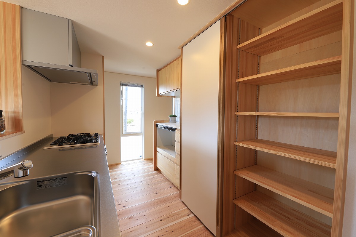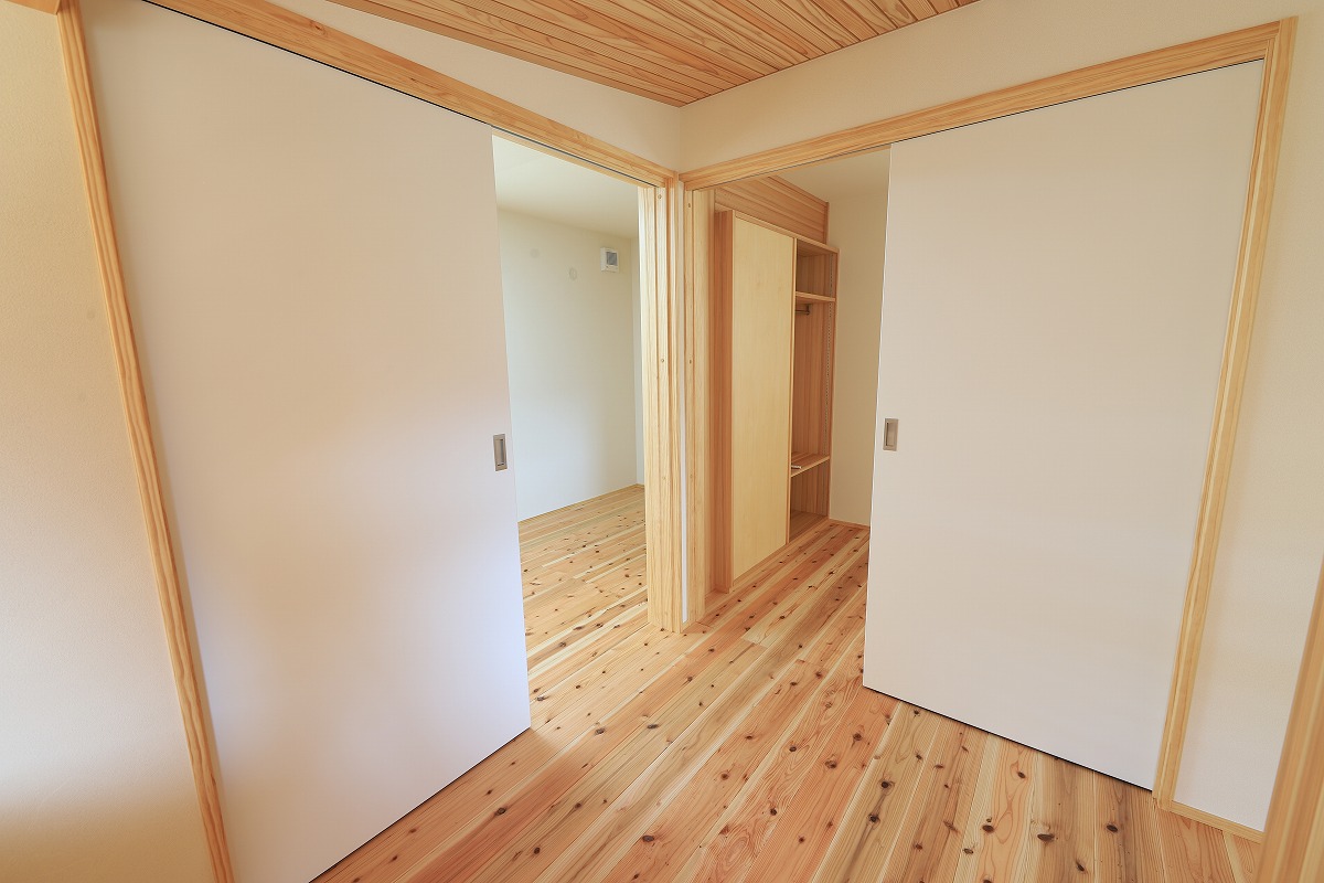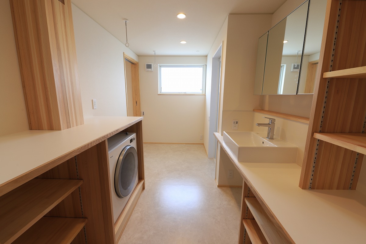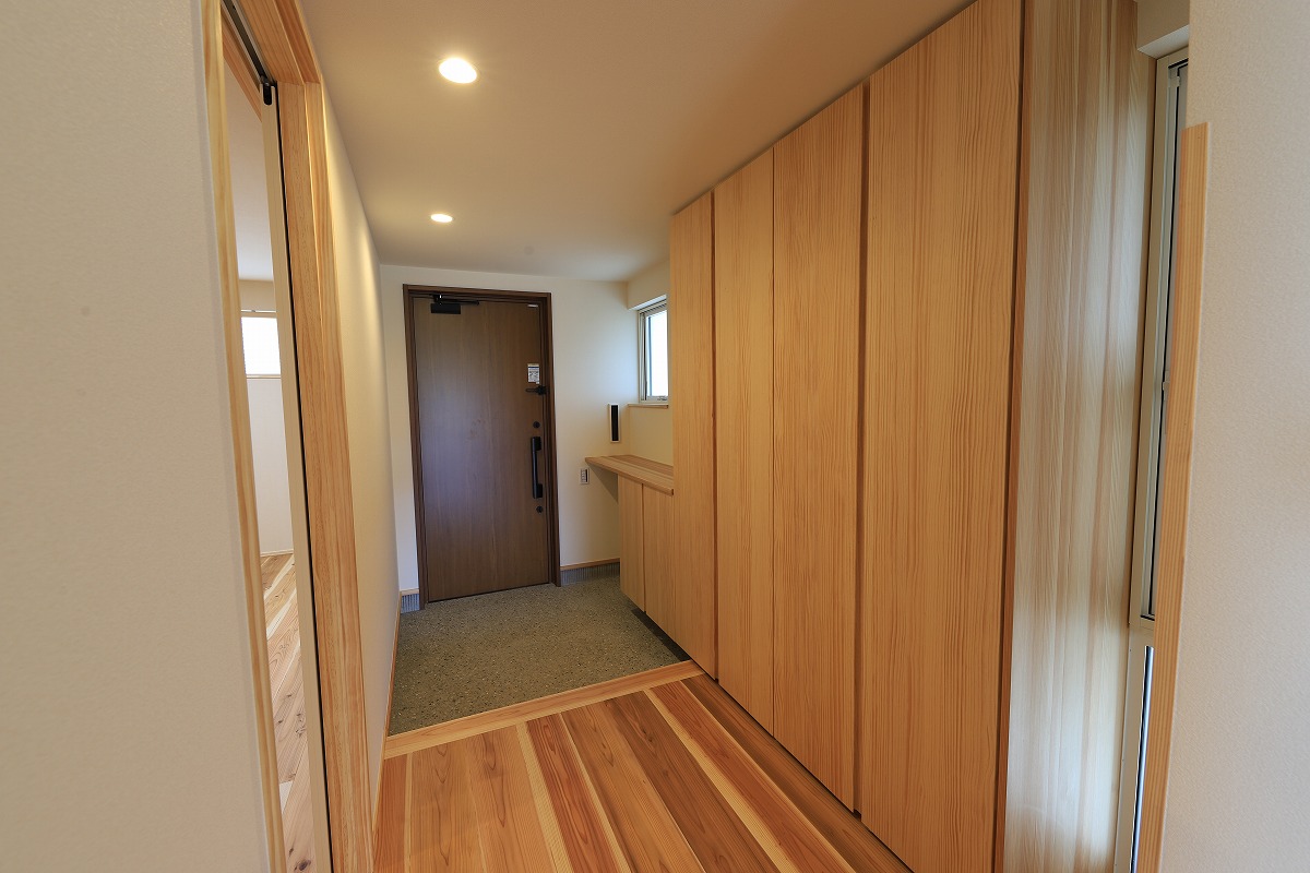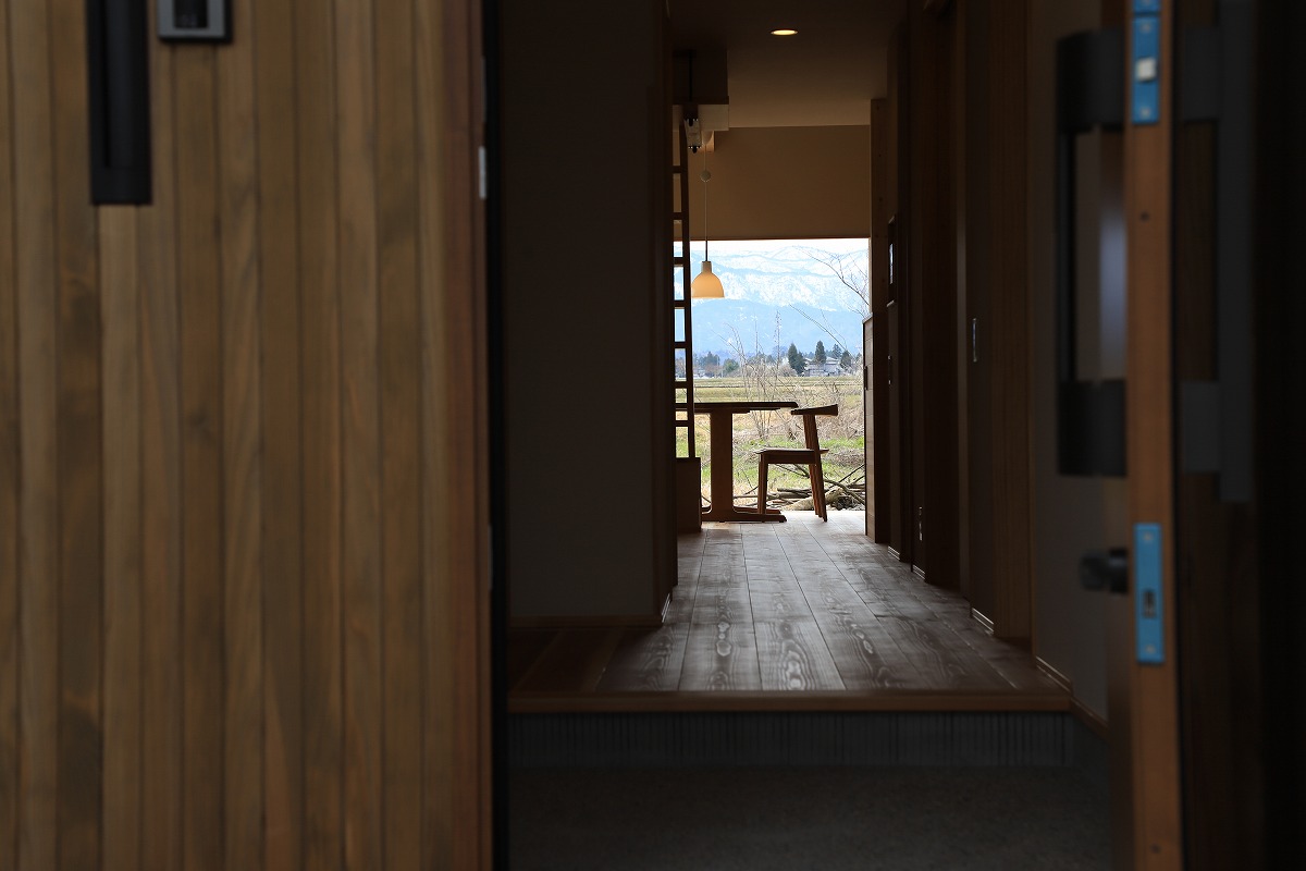 玄関を開けると目の前には遠く立山連峰の一部。 室内に入った瞬間から心地いい景色と風を感じます。